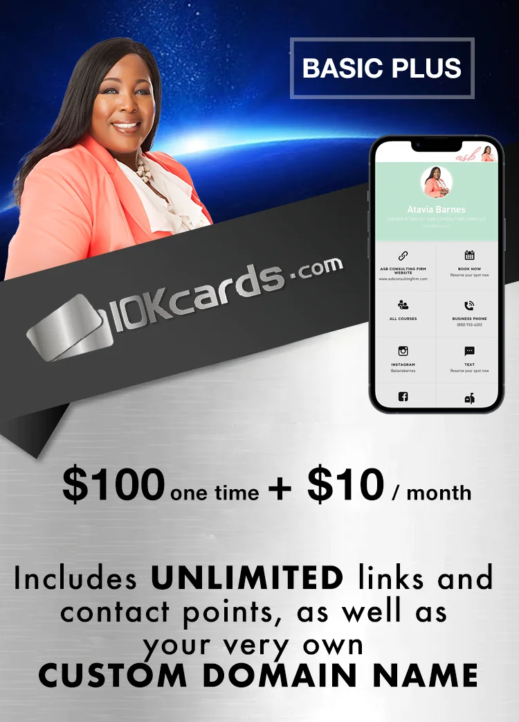 Get a revolutionary digital card with up to 10 links/contact points included.